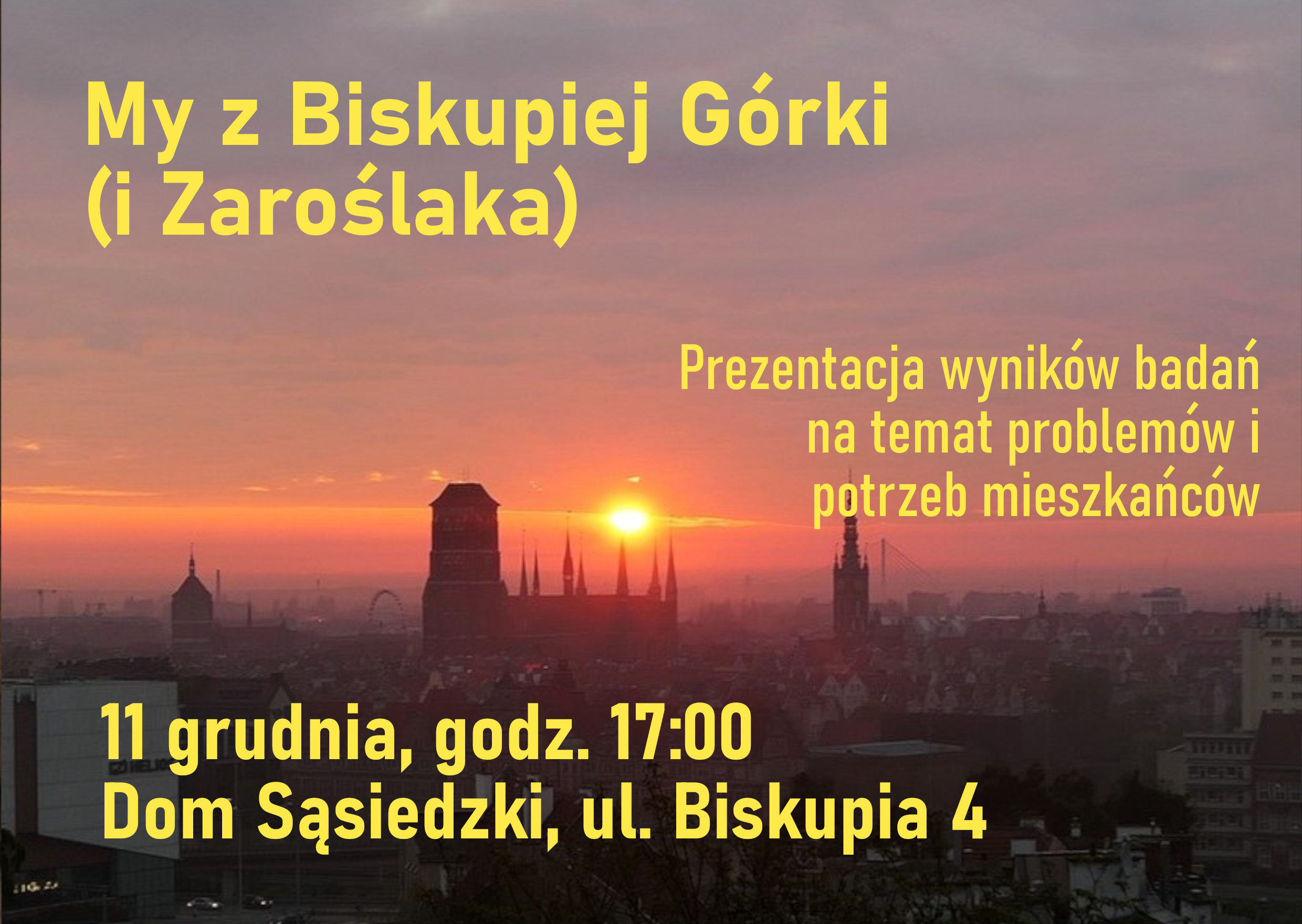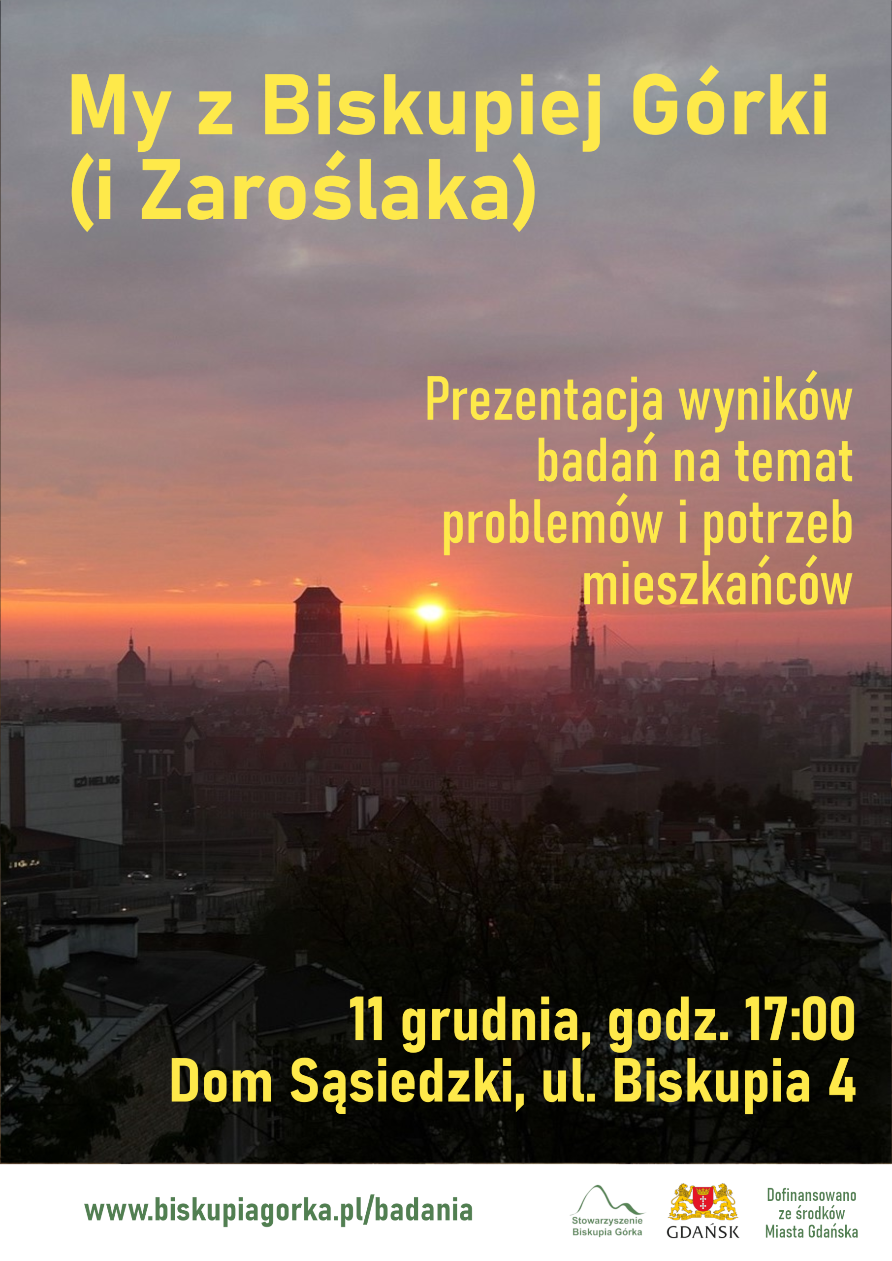 Serdecznie zapraszamy na spotkanie podsumowujące projekt „My z Biskupiej Górki. Partycypacyjna diagnoza społeczności Biskupiej Górki” i prezentację wyników badań na temat problemów i potrzeb mieszkańców naszego osiedla.