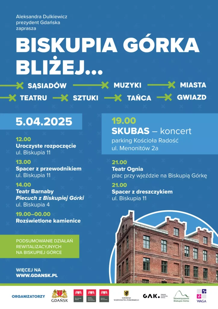• 19:00 – Biskupia Górka bliżej… muzyki – koncert SKUBAS, parking, ul. Menonitów 2a,