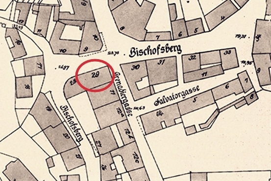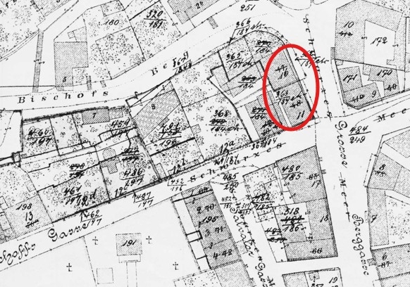 Trzeba też wziąć pod uwagę, że do ok. 1885 r. parcela miała numery 47 i 48, a ulica nosiła nazwę Schwarzes Meer, potem do ok. 1915 r. miała adres Grosse Berggasse 16, a od 1916 do 1945 r. Bischofsberg 29.
