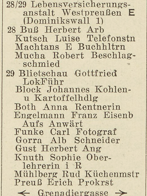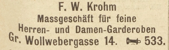 1919 r. – nowym właścicielem kamienicy (a właściwie obu 28 i 29) zostaje Friedrich Wilhelm Krohm, mistrz krawiecki, mieszkający na Grosse Wollweberggasse 14 (obecnie Tkacka).