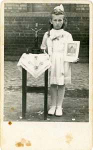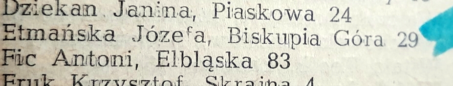 Później, w 1946 r., dostaliśmy mieszkanie przy Biskupiej 29, mieszkania 3, po pani, która nazywała się Trznadel i miała syna Tadeusza. Tam mieszkaliśmy do 1962 r., bo miał być generalny remont tej kamienicy i moja mama się strasznie tego bała. Dostaliśmy mieszkanie na Elbląskiej.