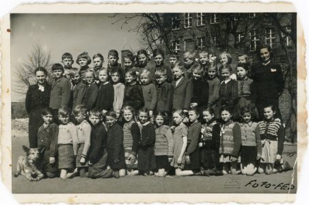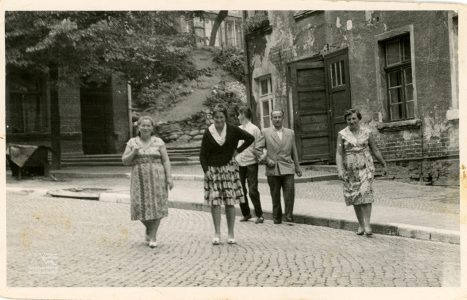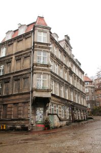 Te drzwi w narożniku budynku to zawsze były zamknięte, nie przypominam sobie, żebym kiedyś widziała je otwarte. W moim domu na dole mieszkali państwo Mąkiewiczowie, oni byli z Wilna albo z wileńskiego, ich syn mieszkał tam chyba do swojej śmierci. Na pierwszym piętrze mieszkaliśmy my. Po drugiej stronie mieszkało dwóch panów Zielińskich. Jeden chyba był weterynarzem, czy coś miał wspólnego z weterynarią. Na drugim piętrze mieszkało małżeństwo Wójcików z córką Bożenką. Pan Wójcik bardzo wcześnie zmarł. I naprzeciwko mieszkała Ula Fritsch. To jest rodzina, o której myśmy wszyscy nie wiedzieli, że jest tak bardzo zasłużona dla Polonii Gdańskiej. Pani Fritsch nazywała się z domu Majewska – jest ulica braci Majewskich. Jeden brat był obrońcą Poczty Gdańskiej, drugi ksiądz Majewski, zginął w obozie, jest tablica pamiątkowa na domu harcerza, (jeszcze dwóch braci zginęło z rąk Niemców przyp. red.). Pan Fritsch był przed wojną trenerem piłki nożnej w KS Gedania. Już później Ula mi powiedziała, że oni wyjechali z Polski przed samą wojną i po wojnie wrócili do Gdańska. W 1952 czy 1953 r. wyjechali do Austrii, bo pan Fritsch był Austriakiem.