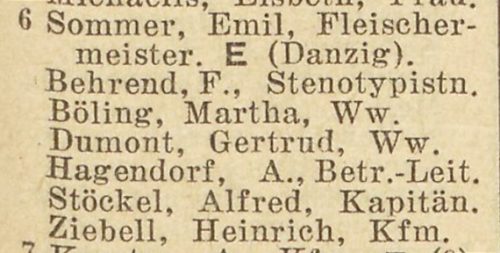 Brunon Zwarra, we „Wspomnieniach Gdańskiego Bówki” (tom I, Wyd. Morskie Gdańsk, 1984, s. 18) tak pisał o panu Sommerze: „… a naprzeciwko sklep rzeźniczy Emila Sommera, u którego kupowaliśmy przez pewien czas za kilkanaście fenigów we czwartki pozostałą po gotowaniu kiełbas zupę „Wurstsuppe”(…) „Rzeźnik Sommer stał się potem wielkim hitlerowcem; tuż przed zajęciem Gdańska w 1945 r. przez wojska radzieckie i polskie popełnił samobójstwo.”