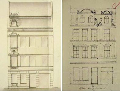 W teczkach są też bardzo interesujące plansze z projektami usytuowania ewentualnych plomb z obu stron kamienicy Biskupia 6, dotąd niezrealizowane.