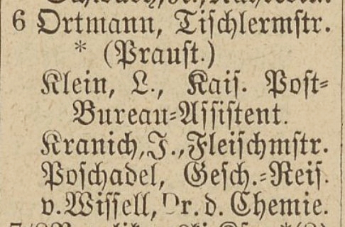 1899 r. – właścicielem jest pan Ortmann, mistrz stolarski mieszkający w Pruszczu, a od 1900 do 1905 r. wdowa po nim, zamieszkała na Kleine Berggasse 9. Rzeźnik Kranich działa do 1902 r., a po nim, w latach 1903-1904 Max Helling, w 1905 r. Otto Taddra.