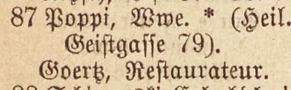 1884 r. – właścicielką jest wdowa Minna Clara Poppi z domu Hinsse, która mieszkała przy ul. Świętego Ducha.