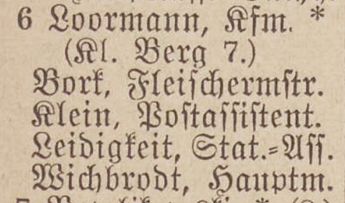 1896 r. – nowym właścicielem jest Julius Hermann Loormann, kupiec mieszkający na Kleine Berggasse 7 do 1898 r., a rzeźnika Bock`a zastępuje Johannes Kranich.