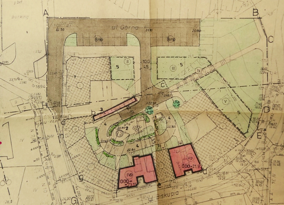 W teczkach są też bardzo interesujące plansze z projektami usytuowania ewentualnych plomb z obu stron kamienicy Biskupia 6, dotąd niezrealizowane.