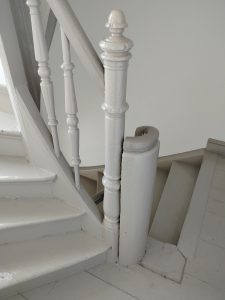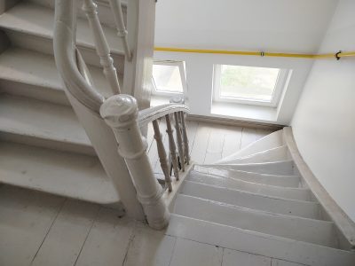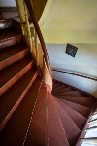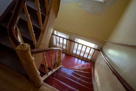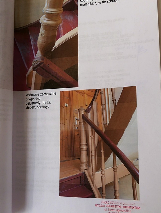 Podobny układ mieszkań w tym budynku był na każdym piętrze. Na pierwszym były dwa mieszkania – po lewej stronie żył samotny pan, a po prawej rodzina państwa Majerów. Gdy sąsiad zmarł, państwo Majer za zgodą gminy zajęli też jego lokal. Pani Majer bardzo dbała o czystość klatki schodowej i podwórka. Po śmierci córki wymienili się na mieszkania z inną rodziną.