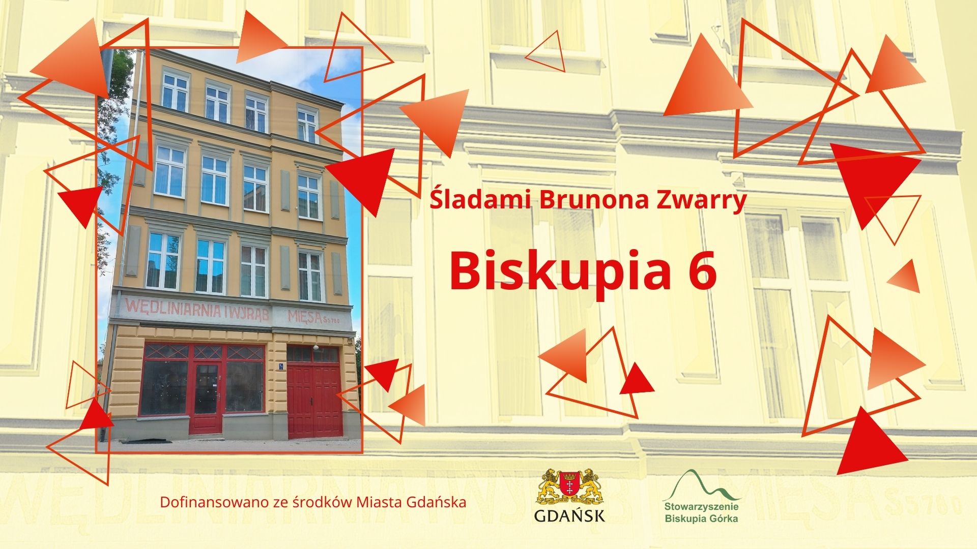 Historia kamienicy Biskupia 6 została opracowana w ramach projektu Stowarzyszenia Biskupia Górka „Śladami Brunona Zwarry” dofinansowanego ze środków Miasta Gdańska.