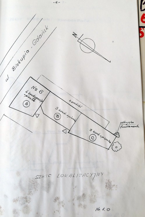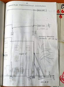Można w nich znaleźć taki drobiazg z 1963 r., jak podanie lokatora o zgodę na użytkowanie szopy stojącej na podwórku, ale jest w nich dużo interesujących dokumentów związanych z ekspertyzami stanu technicznego budynku. Szczególnie bogata jest korespondencja w sprawie drugiej oficyny (C), którą w rezultacie rozebrano na przełomie czerwca i lipca 1996 r. Jednocześnie wykonane zostały zabezpieczenia pozostałej części oficyny w postaci ceglanych murów oporowych, spełniających swe zadanie do dziś. Dokumenty od września 1992 do lipca 1996 r wędrowały między różnymi wydziałami Urzędu Miasta Gdańska, a Przedsiębiorstwem Gospodarki Mieszkaniowej. Dzięki tej korespondencji zachowały się zdjęcia stanu budynku przed rozbiórką, niestety mało czytelne oraz szkice lokalizacyjne, dzięki którem wiemy jaki był układ oficyn.