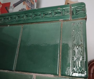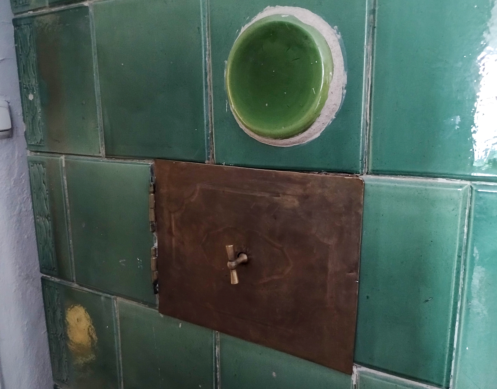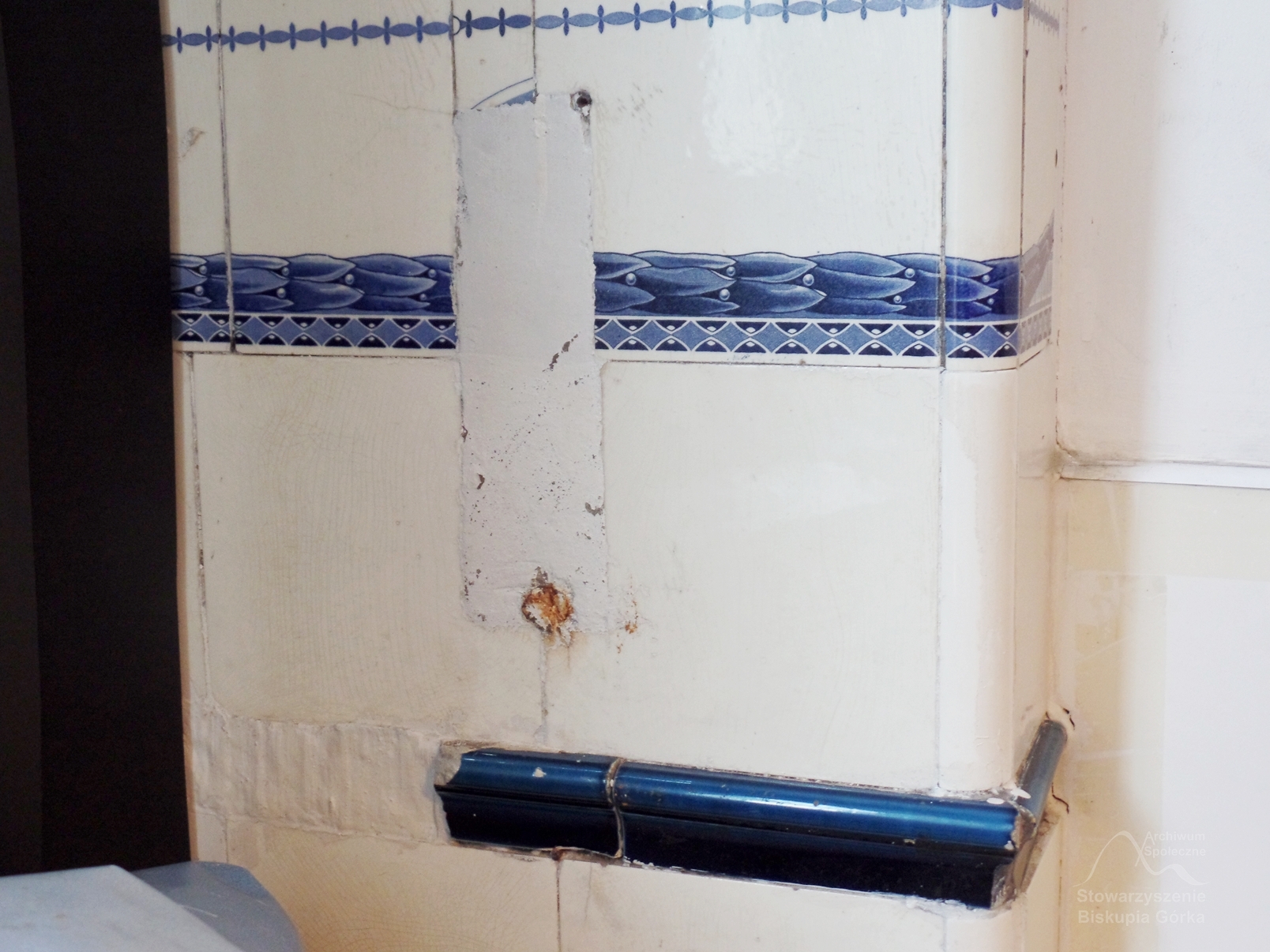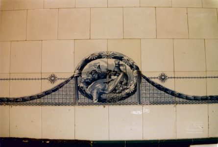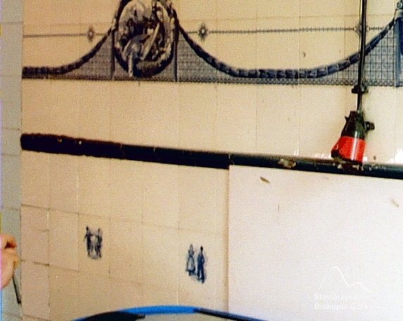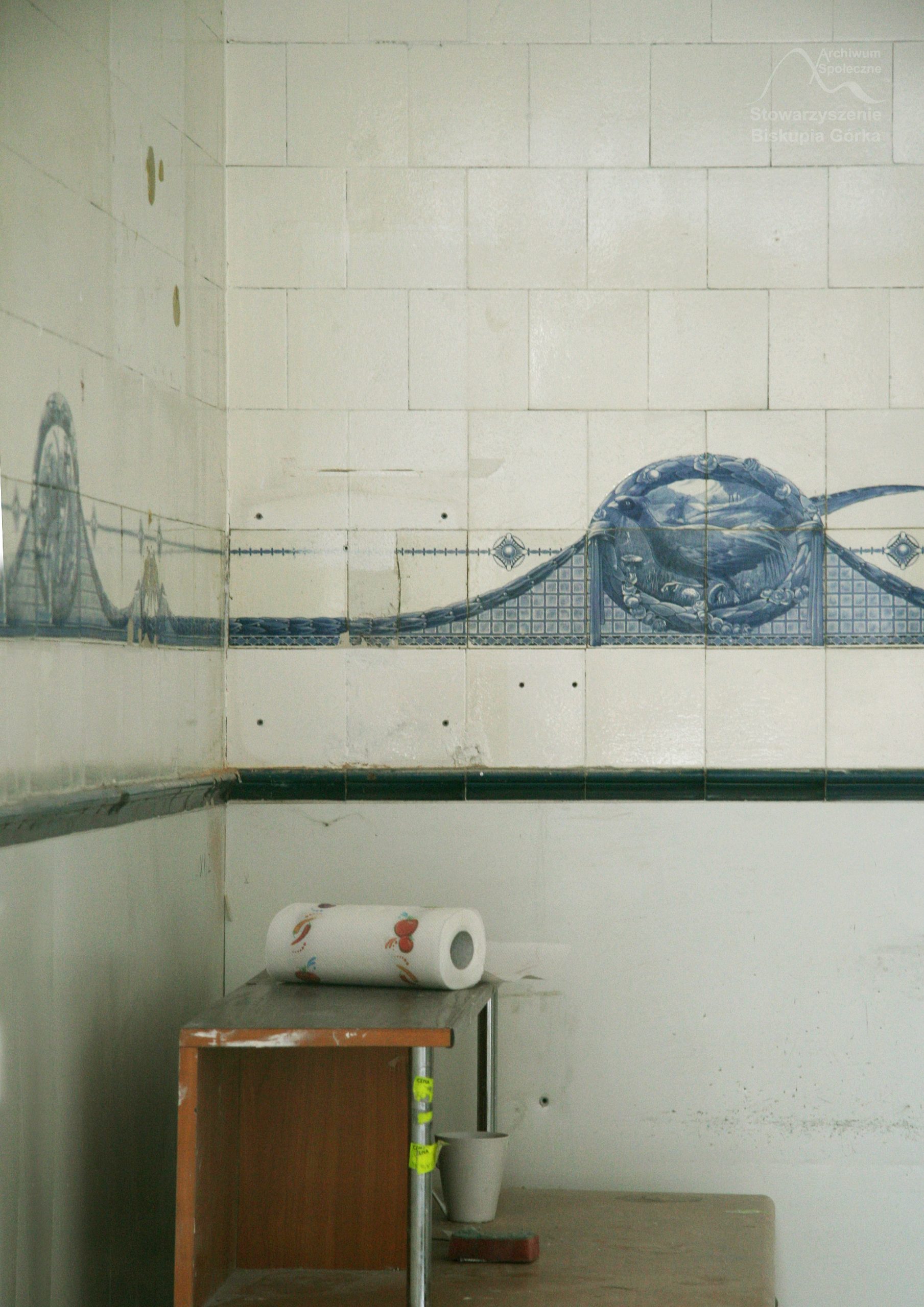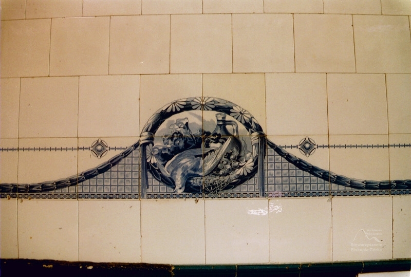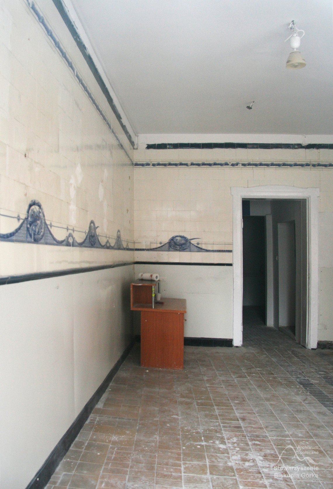 Wnętrze sklepu mięsnego przetrwało II wojnę światową bez uszczerbku, było niezwykle piękne. Ściany od podłogi do sufitu wyłożone były kafelkami z fabryki Norddeutschen Steingutfabrik Grohn k. Bremy. Na białym tle ścian miejscowo wkomponowano kafelki z niebieskimi zdobieniami motywami roślinnymi, zwierzęcymi, ze scenkami rodzajowymi lub jako listwy dekoracyjne. Wnętrza dopełniały przymocowane do ścian pasy haków rzeźniczych. Do dziś wiele osób wspomina, że oglądanie tych malowideł ma kaflach pozwalało przetrwać sklepowa nudę oczekiwania na swoja kolejkę. Lokal pełnił funkcję sklepu mięsnego do 2009 r.