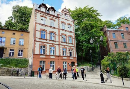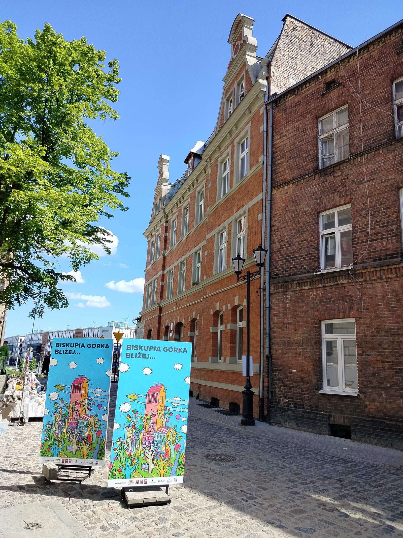 Na ścianie kamienicy Biskupia 4 można było obejrzeć wszystkie prace członków Urban Sketchers Gdańsk poświęcone Biskupiej Górce.
