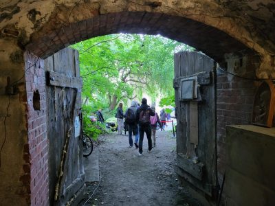 Spacer z lokalną przewodniczką Magdaleną Kamrowską. Niewątpliwą atrakcją było zwiedzanie wnętrza niedostępnej na co dzień zabytkowej prochowni.