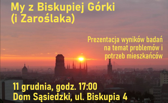 Serdecznie zapraszamy na spotkanie podsumowujące projekt „My z Biskupiej Górki. Partycypacyjna diagnoza społeczności Biskupiej Górki” i prezentację wyników badań na temat problemów i potrzeb mieszkańców naszego osiedla. Prezentacja raportu z badań odbędzie się 11 grudnia o godz. 17:00 w Domu Sąsiedzkim (ul. Biskupia 4). Oprócz wyników badań zostaną zaprezentowane rekomendacje […]