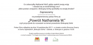 Film nosi tytuł ” Powrót Nataniela W., czyli przyczynek do rozważań o przeszłości Biskupiej Górki” realizowanego w ramach projektu ” Po drugiej strony bramy” współfinansowanego ze środków Miasta Gdańsk.